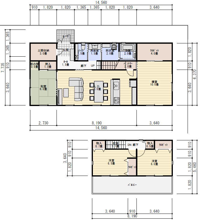 洋室 6畳 クロゼット 1畳 ×2室