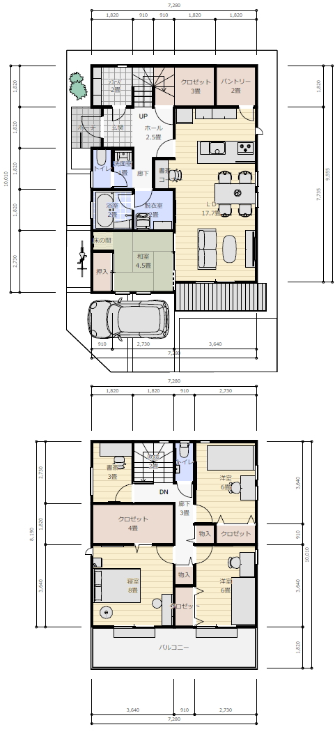 子供部屋6畳が2室が欲しいです。