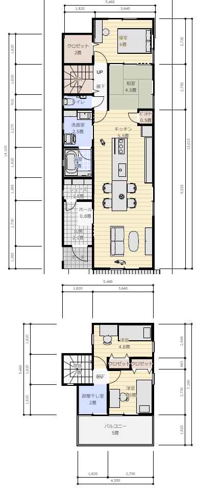 (少し天井を高くして吹き抜けはなしで考えています。)