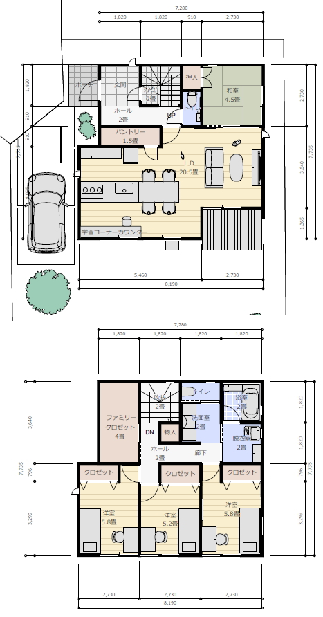 比較になる2案を作りましたので比較検討してください。