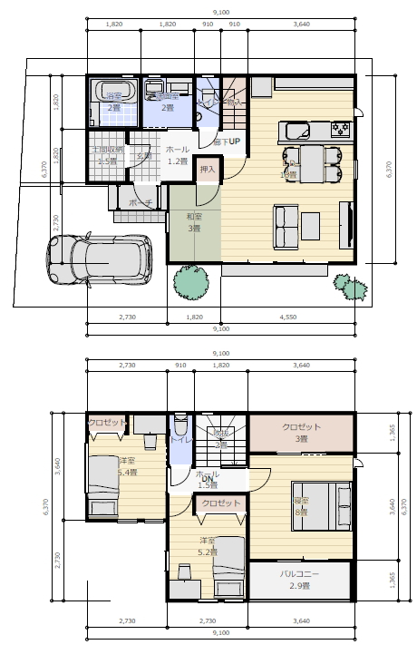 2階には子供部屋6畳が2室と夫婦の寝室が1室