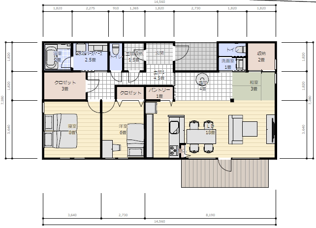 *ウォークインクローゼット(ファミリークローク)3〜4畳